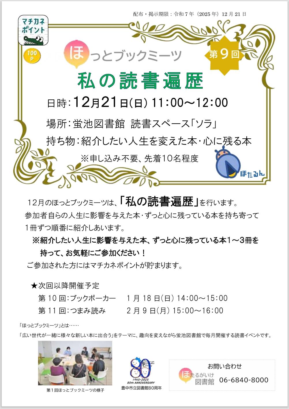 毎月「ほっとブックミーツ」という読書のイベントを行っています。 ※ほっとブックミーツ詳細