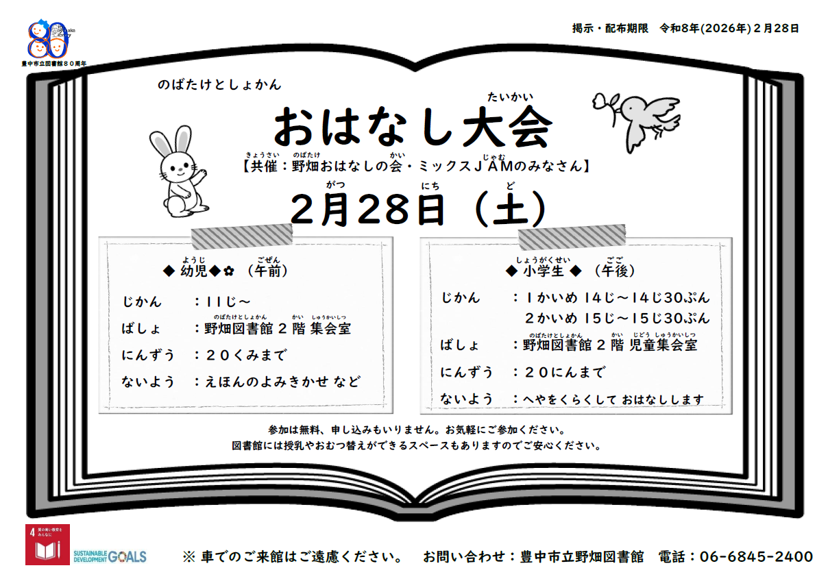 令和8年(2026年)2月28日(どようび) 先着順 ※もうしこみ・おかねは、いりません